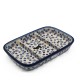 Półmisek prostokątny wykonany z ceramiki bolesławieckiej został podzielony na trzy równe przegródki, tworząc idealne miejsce na przystawki. Każda przegródka ma swój własny urok, tworząc harmonijną kompozycję w odcieniach niebieskiego, charakterystycznych dla tej tradycyjnej techniki zdobniczej.