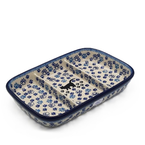 Piękny i praktyczny półmisek dzielony na trzy równe przegródki z motywem kocich łapek. To idealny sposób na efektowne serwowanie przystawek, przekąsek ,bakalii itp.