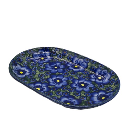 Półmisek z ceramiki Bolesławiec 33,0 x 21,5 cm z motywem kwiatowym.