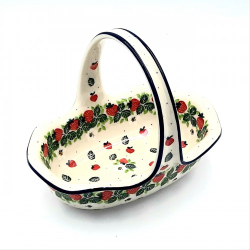 Praktyczny i dekoracyjny koszyk z motywem poziomek z Ceramiki Bolesławieckiej.