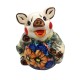 Skarbonka przedstawia uśmiechniętą świnkę, której czerwone policzki i duże oczy nadają jej sympatycznego wyglądu. Całość pokryta jest charakterystycznym dla ceramiki bolesławieckiej wzorem kwiatowym oraz trawką, które dodają skarbonce lekkości i świeżości. Dominuje zielona trawka kontrastująca z kwiatami w odcieniach niebieskiego i czerwonego.