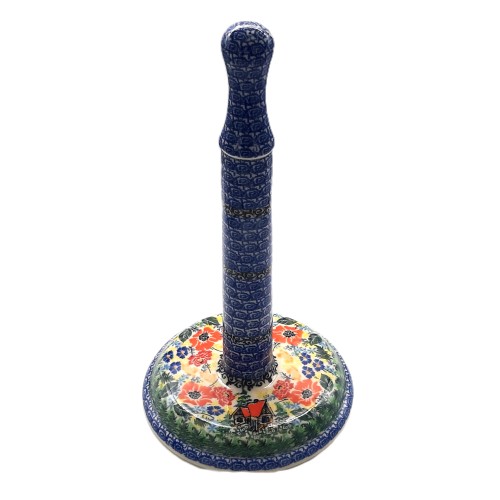 Stojak na ręcznik papierowy z ceramiki bolesławieckiej to piękny i praktyczny przedmiot, który doda uroku Twojej kuchni. Ręcznie malowany motywem roślinnym z elementem domku zachwyca swoim wyglądem i funkcjonalnością.