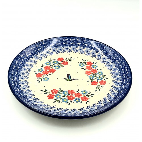 Talerz obiadowy płytki z motywem kwiatowym oraz ptaszkiem (średnica 25,3 cm) - Ceramika Bolesławiec