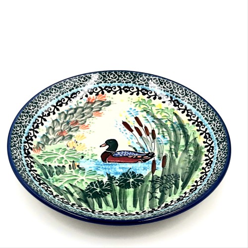 Talerz deserowy z motywem kaczki- unikat sygnowany przez twórcę.