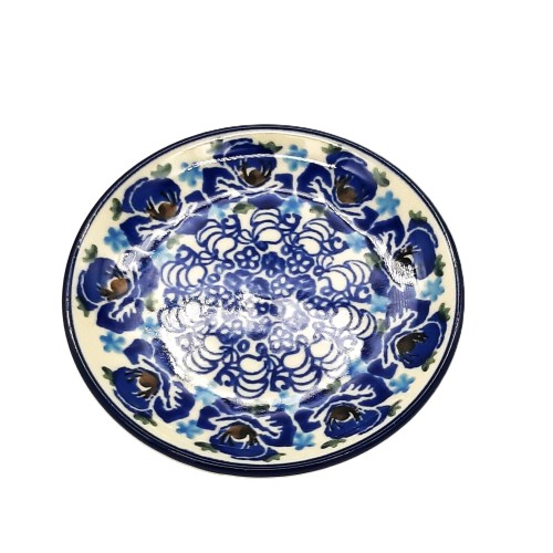 Mały talerzyk bolesławiecki o średnicy 9,7 cm i wysokości 1,5 cm zachwyca uroczym motywem kwiatowym, ręcznie malowanym przez wykwalifikowanych rzemieślników.
