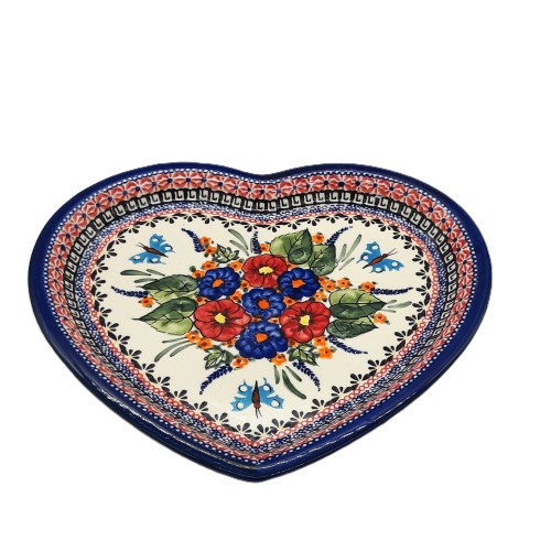 Elegancki i praktyczny talerz w kształcie serca z ceramiki bolesławieckiej.