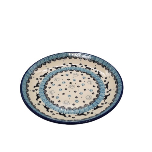 • Dekoracja z motywem piesków w odcieniach niebieskiego i czarnego, ręcznie malowana przez wykwalifikowanych rzemieślników z Bolesławca. Delikatne wzory i żywe kolory nadają talerzowi wyjątkowy charakter i czynią go prawdziwym dziełem sztuki użytkowej.