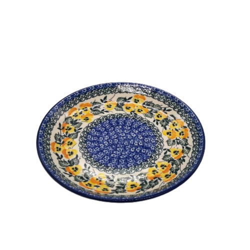 Talerz deserowy o średnicy 19,9 cm z motywem bratków z ceramiki Bolesławiec to prawdziwa perełka dla miłośników pięknych przedmiotów i wysokiej jakości rzemiosła. Ceramika Bolesławiec słynie z swojej trwałości, wyjątkowego wzornictwa oraz charakterystycznych, kolorowych dekoracji. Talerz taki z pewnością będzie ozdobą każdego stołu.