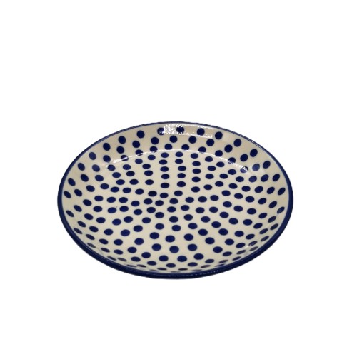 Talerz deserowy o średnicy 19,9 cm z motywem kobaltowych groszków na jasnym tle z ceramiki Bolesławiec to prawdziwa perełka dla miłośników pięknych przedmiotów i wysokiej jakości rzemiosła. Ceramika Bolesławiec słynie z swojej trwałości, wyjątkowego wzornictwa oraz charakterystycznych, kolorowych dekoracji. Talerz taki z pewnością będzie ozdobą każdego stołu.