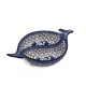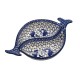 Talerz ryba o wymiarach 23/15 cm, h:5 cm to uroczy dodatek do każdej zastawy stołowej, produkowany przez Spółdzielnię Rękodzieła Artystycznego w Bolesławcu. Charakterystyczny wzór z motywem rybek nadaje mu wyjątkowego uroku i wprowadza do wnętrza nutę przyrody.