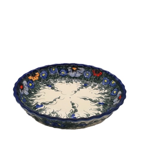 Foremka do tarty o średnicy 25 cm to piękne i praktyczne naczynie do pieczenia tart zarówno na słono, jak i na słodko. Jest ręcznie malowana motywem kwiatowym oraz trawką i wykonana z wysokiej jakości gliny- kamionki. Foremka jest bezpieczna w piekarniku i kuchence mikrofalowej.