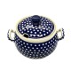 Waza na zupę o pojemności 3,6 l wykonana z ceramiki Bolesławiec to przykład piękna tradycyjnego rzemiosła. Wykonana ręcznie, charakteryzuje się solidnością, trwałością oraz eleganckim designem. Zdobiona motywem w białe groszki na kobaltowym tle, stworzonym techniką stempelkową, waza emanuje urokiem i subtelnością.