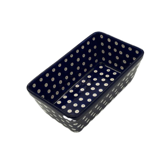 - Wzór: Foremka zdobiona jest wzorem w białe groszki na kobaltowym tle. Ręcznie malowany wzór nadaje każdej foremce niepowtarzalny charakter.