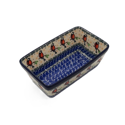 - Wzór: Foremka zdobiona jest wzorem w gile oraz wzorem geometrycznym w odcieniach niebieskiego na dnie. Ręcznie malowany wzór nadaje każdej foremce niepowtarzalny charakter.